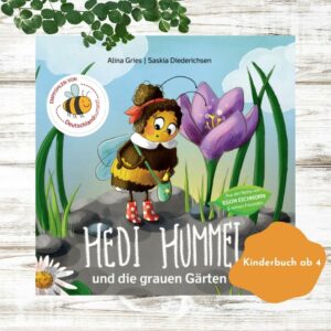 - »Hedi Hummel und die grauen Gärten« von Alina Gries mit Illustrationen von Saskia Diederichsen // Bilderbuch über die Folgen von Steingärten für Insekten // gedruckt in Deutschland // Preis: 19,90€ 💚 Hier bestellen.