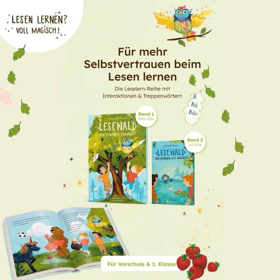 Dieses Buch ist für Lesanfänger:innen, die noch den Einstieg ins Lesen suchen. Ob zu Hause, im Unterricht oder als Geschenk: »Lesewald, Der Zauber erwacht« macht Lesen lernen zu einem magischen Abenteuer. Hier kannst du einen ersten Blick ins Buch werfen .